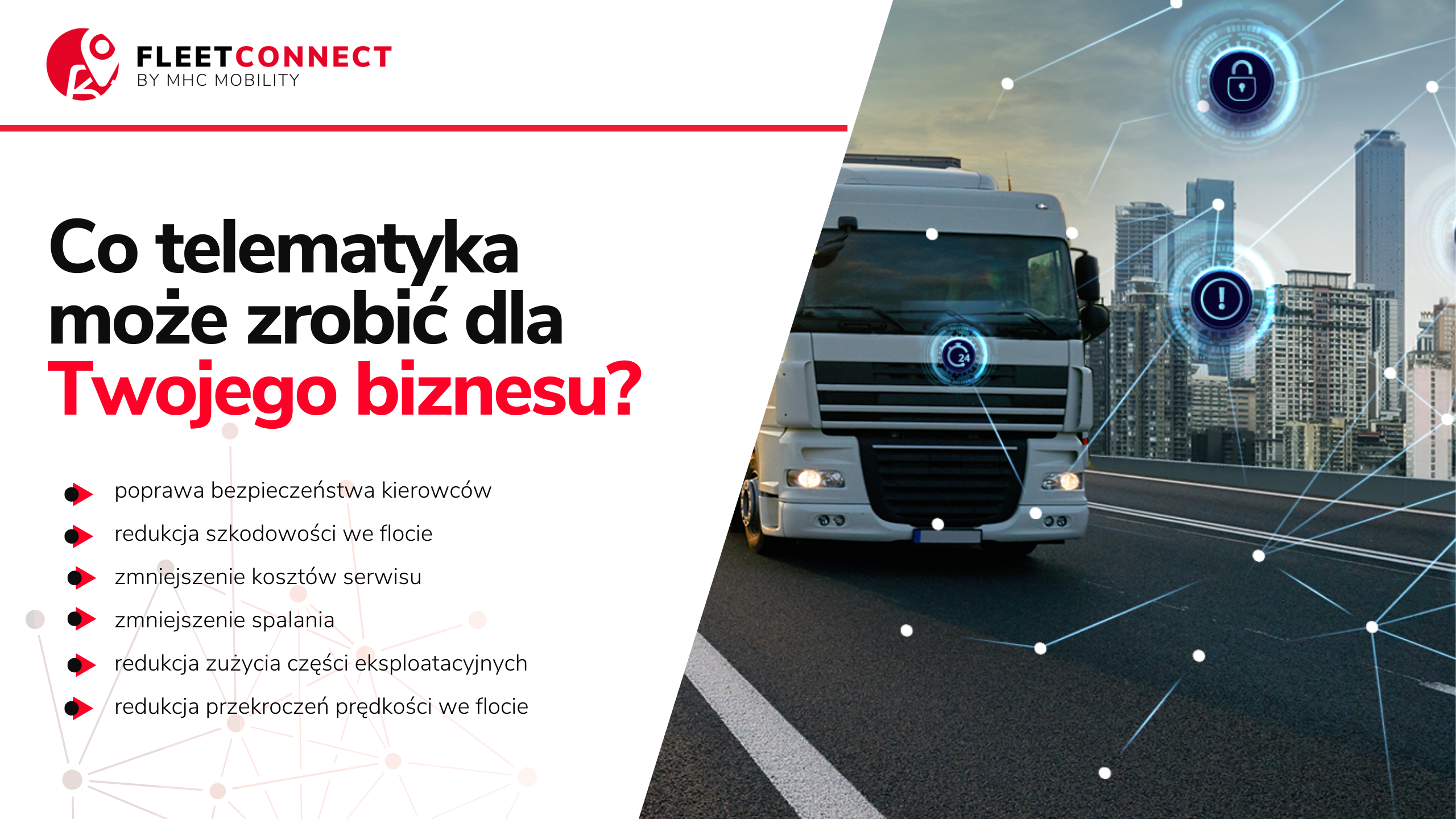 Istnieje wiele obszarów, w których systemy telematyczne mogą przynieść korzyści przedsiębiorstwom. Systemy telematyczne nie tylko informują menedżerów floty o lokalizacji pojazdów. Znacznie usprawniają komunikację, wysyłanie zadań i wyznaczanie tras, a także rejestrują i przesyłają informacje o tym, czy poszczególne pojazdy są w ruchu, czy stoją, ich wydajności silnika (w tym włączaniu, wyłączaniu, pracy na biegu jałowym lub awariach), prędkości pojazdu, zachowaniu kierowcy i nie tylko.